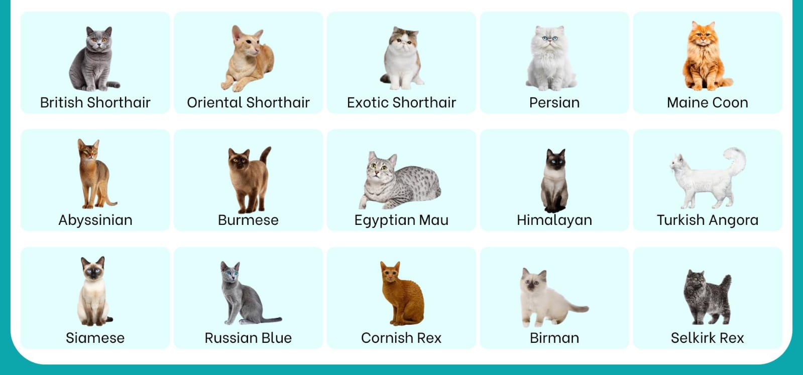 - Small kids → Rag doll, Maine Coon, British Short hair, American Short hair